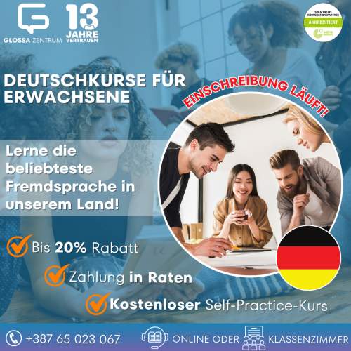 Glossa Centar je renomirani sertifikovani centar za učenje njemačkog jezika koji pruža kvalitetno obrazovanje već više od deset godina.