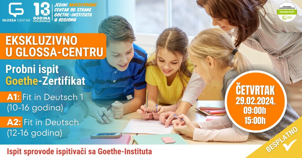 Pozivamo na besplatni probni Goethe-ispit za djecu u Glossa-centru za njemački jezik Banja Luka u organizaciji Goethe-Instituta Bosne i Hercegovine