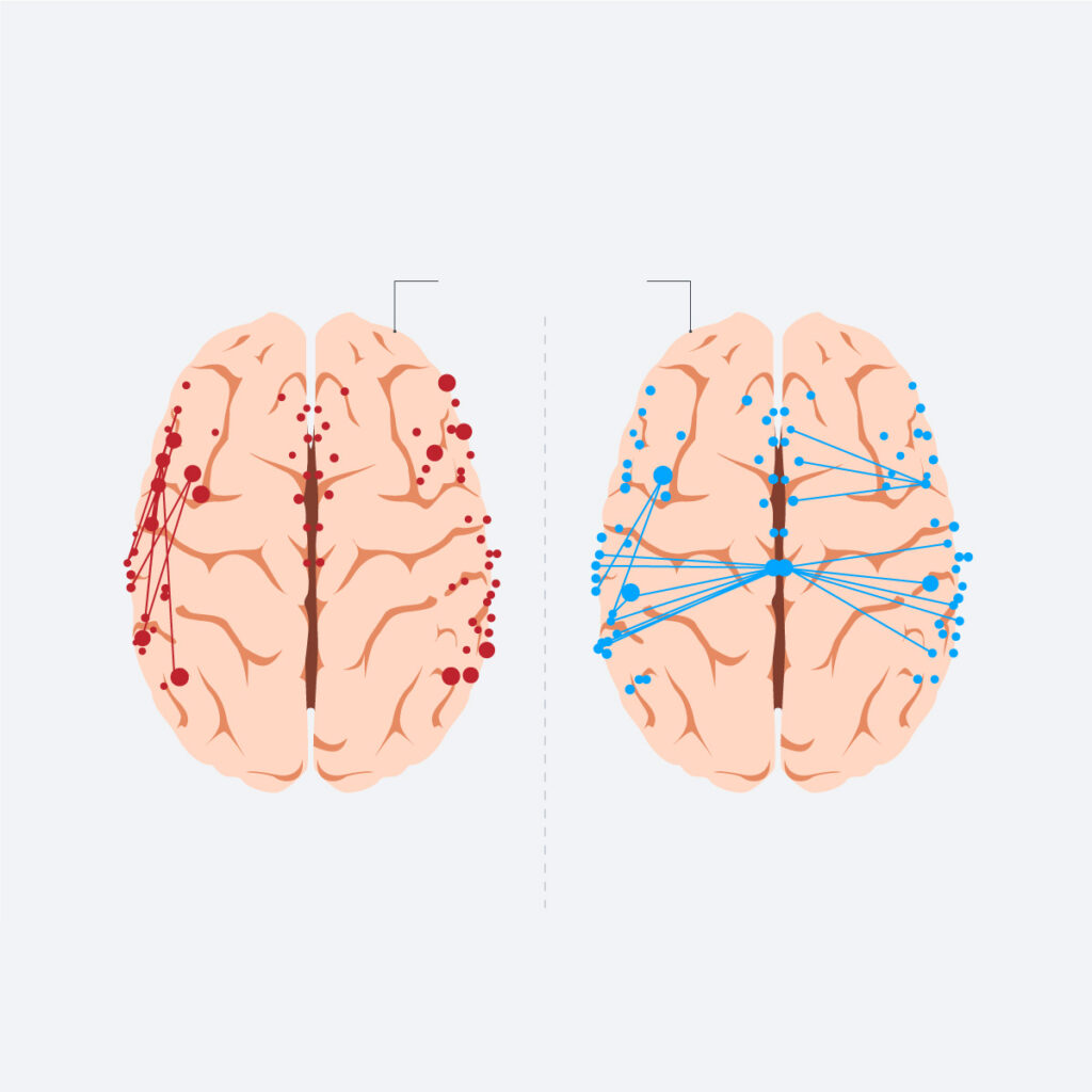 Kod govornika arapskog jezika, istraživački tim je primijetio da su lijeva i desna polutka mozga jače povezane. Također, postojala je jača veza između bočnih režnjeva velikog mozga, nazvanih temporalni režanj, i prema središnjem dijelu, tzv. parijetalni režanj.